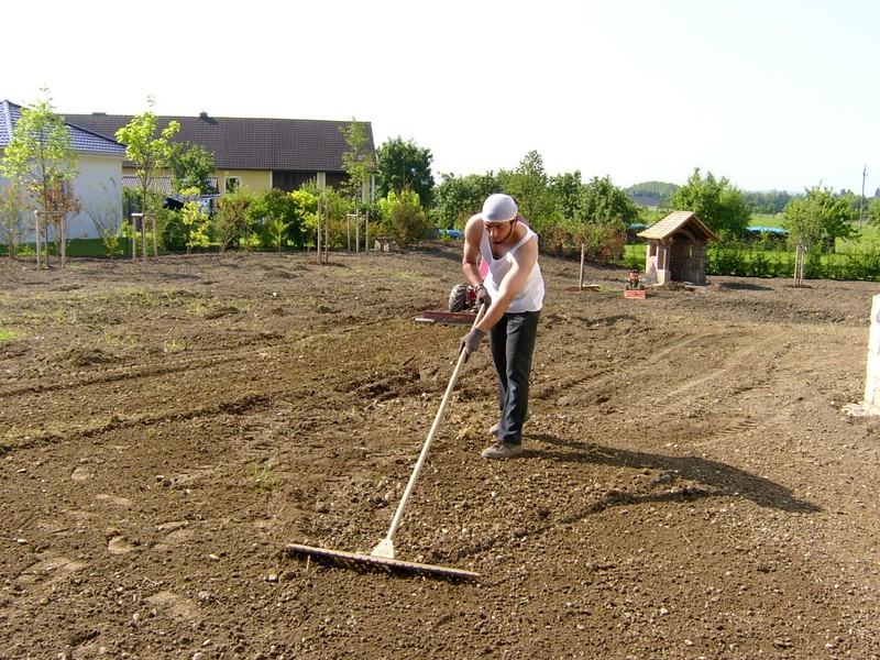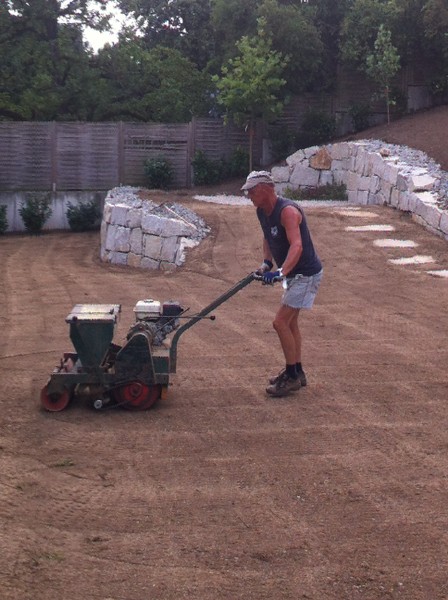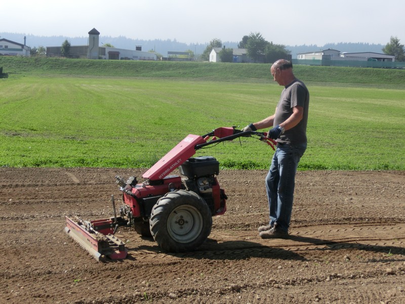Nach Fräs und Planierarbeit wird je nach Bedarf eine Grunddüngung eingebracht.