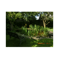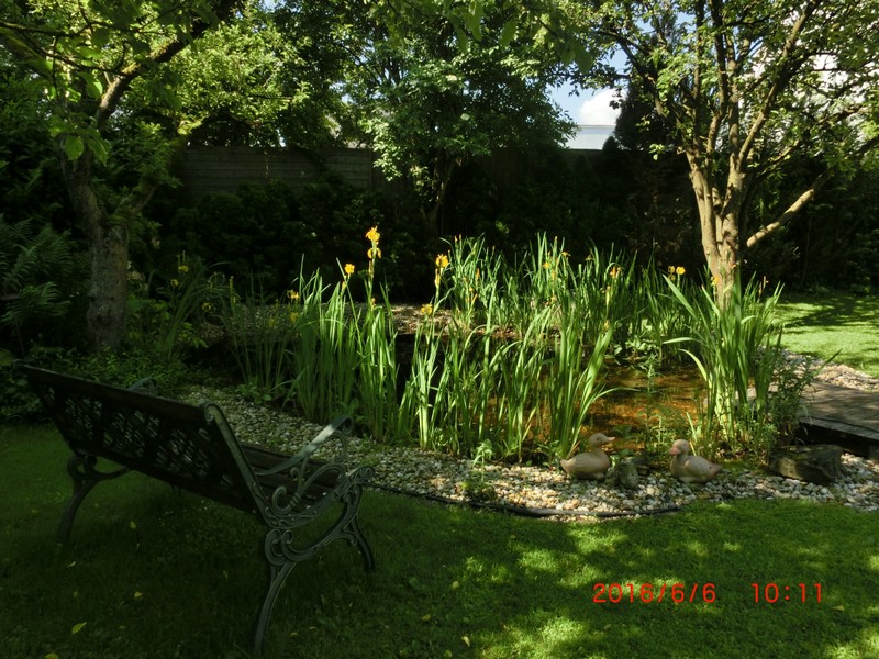 Man könnte es das Herz, die Seele des Gartens nennen. Wasser straht mit seinen